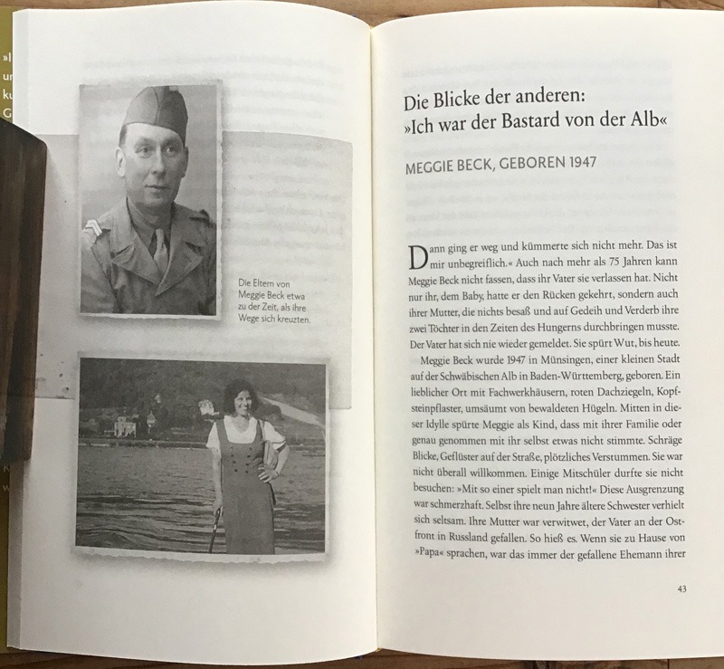 La recherche de Meggie Beck pour retrouver son père biologique fait partie de l’ouvrage documentaire « Schattenschicksale» (Destins dans l’ombre. Parcours de vie des enfants de la guerre issus de relations interdites) (224 pages, publié aux éditions Kösel Verlag, 22 euros). Cinq autres destins d’enfants nés de l’occupation y sont également décrits.